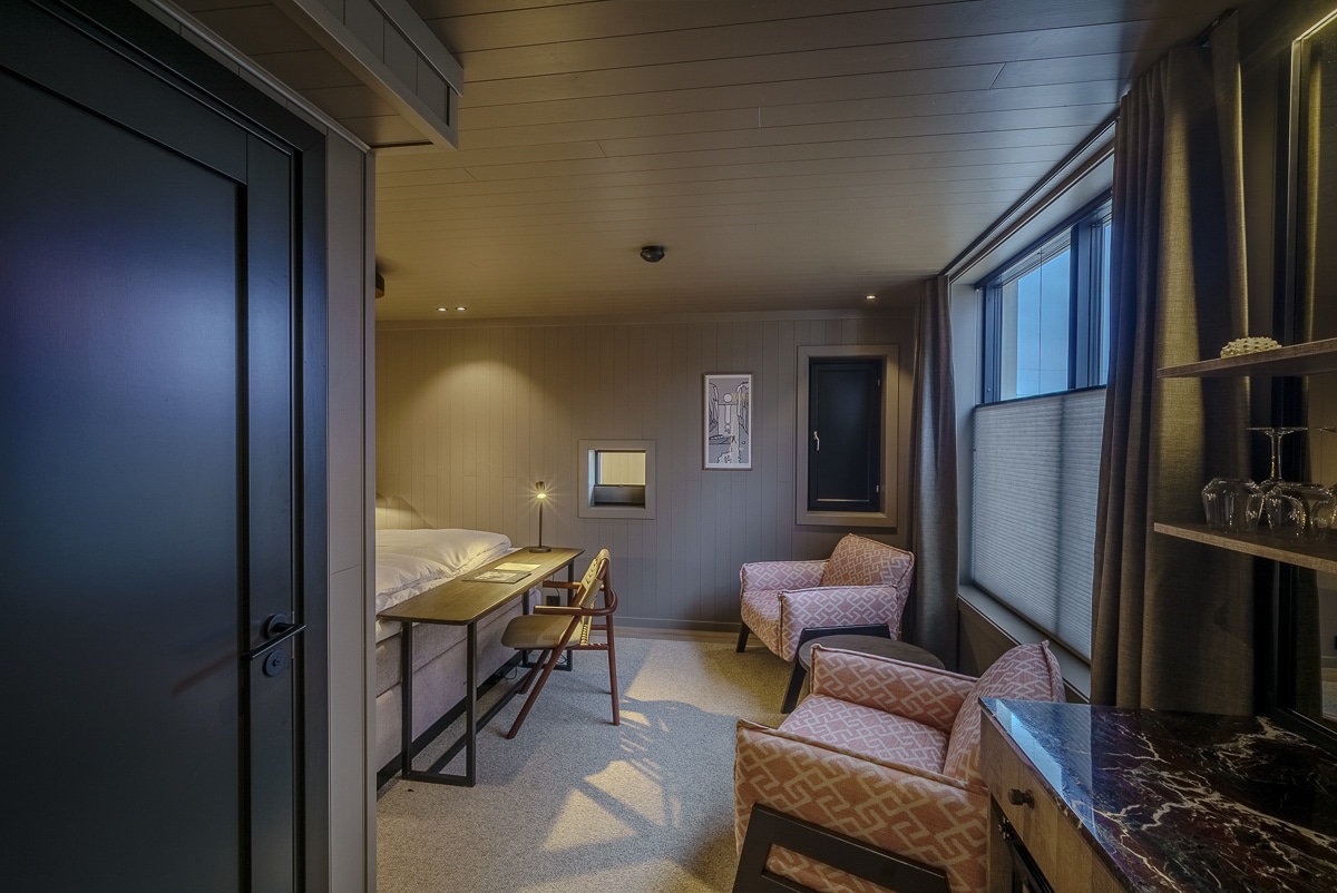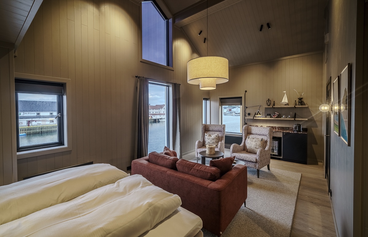 Våre juniorsuiter er smakfullt innredet og den herlige komforten står i kontrast til den ville naturen du finner utenfor – velg mellom landsbyutsikt, sjøutsikt eller havnutsikt.